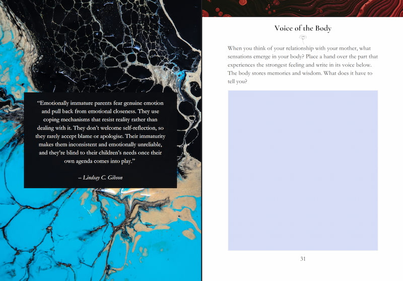 • 40+ journaling prompts and activities exploring the physical, mental, emotional, and spiritual dimensions of healing the mother wound